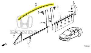12-15 Honda Civic 4 Dr Right Roof Molding - Honda (74306-TR0-A12)