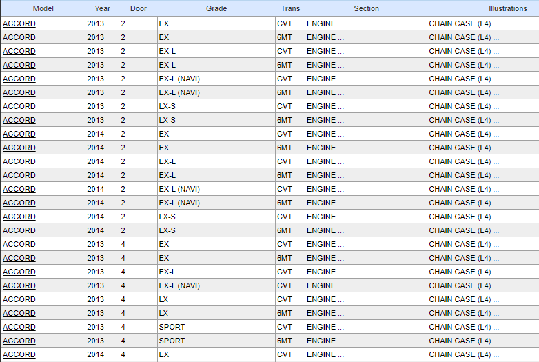 | Year | Make | Model | Body & Trim | Engine & Transmission |
