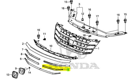 Left Front Grille Center Molding, - Honda (71124-TP6-A01)